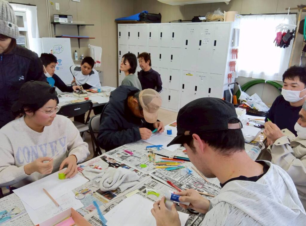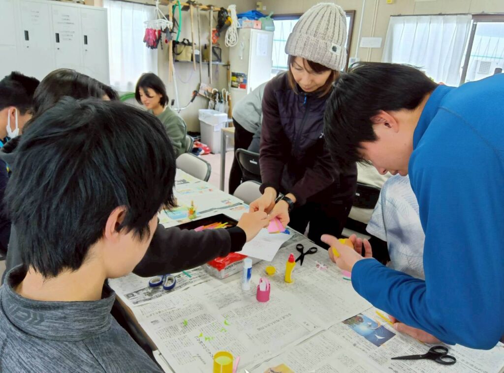みんなで「Thank you♪」の文字を書いたり、手を動かして「ミニバック」を作ったり・・・集中しながらも笑顔いっぱいの時間になりました。(^^♪