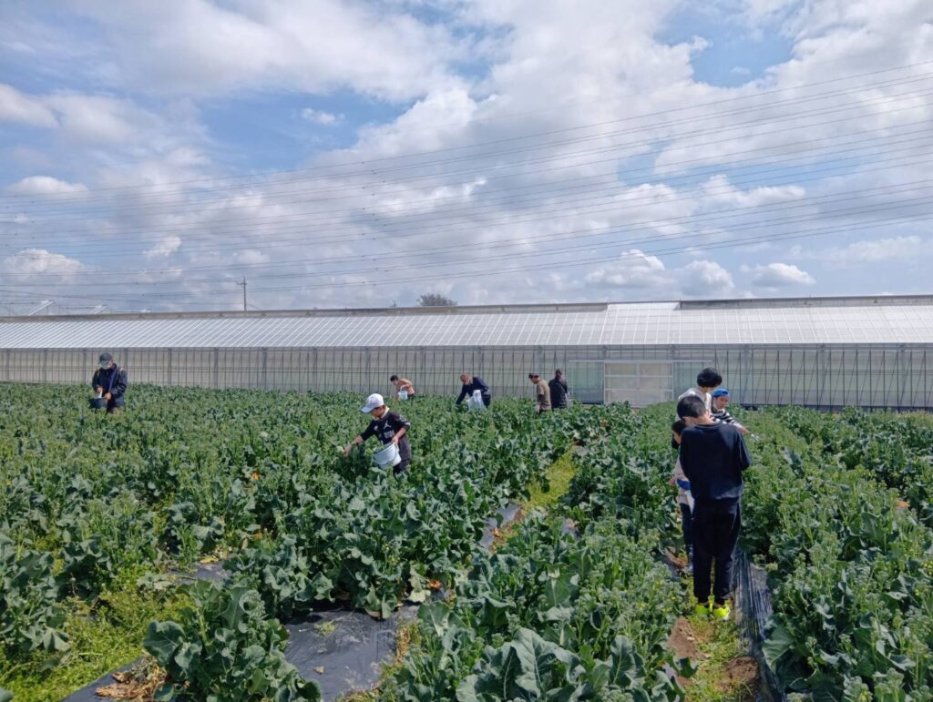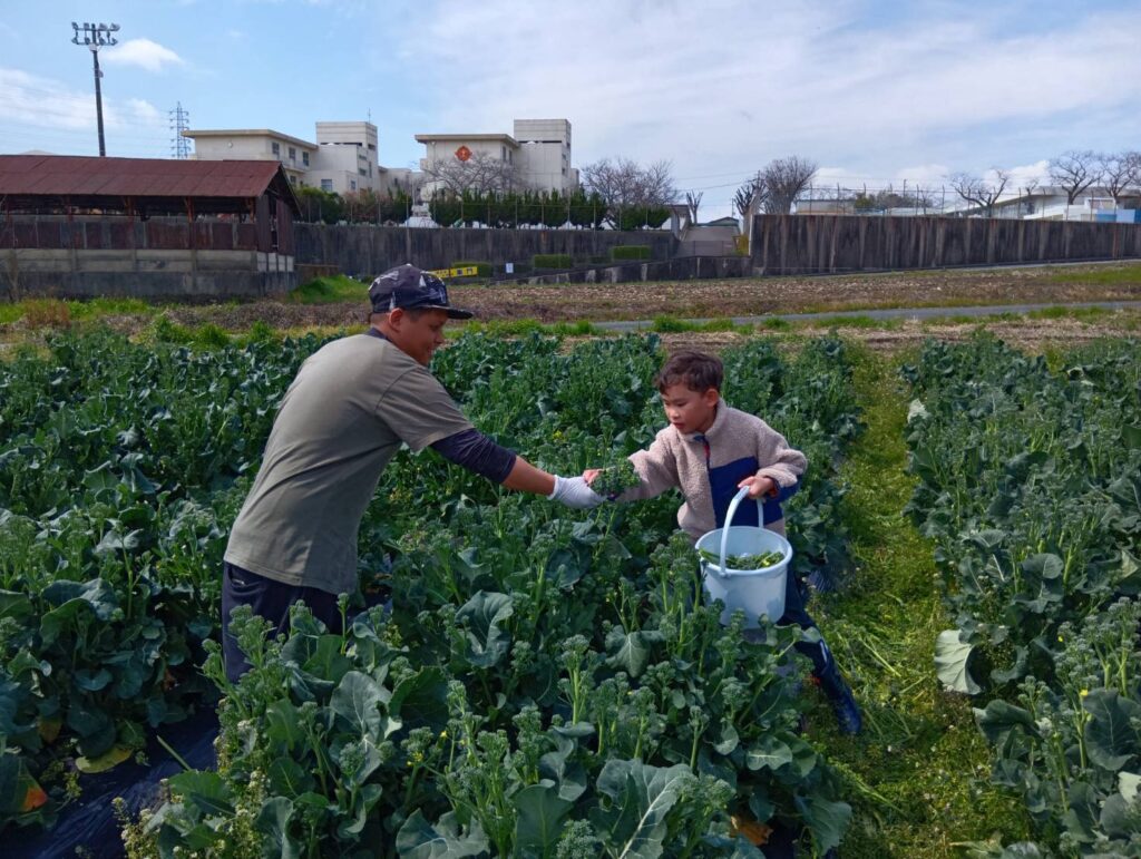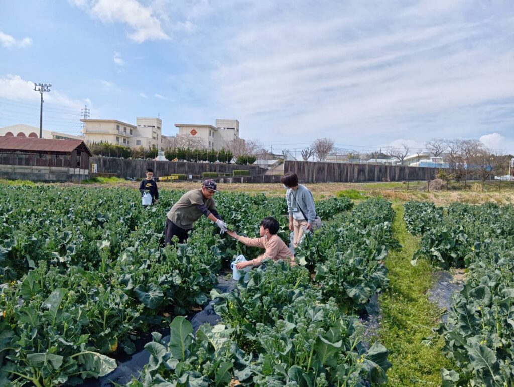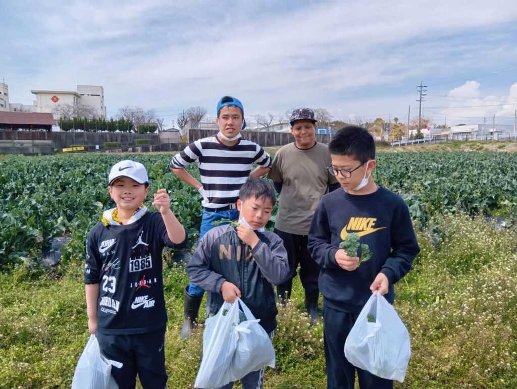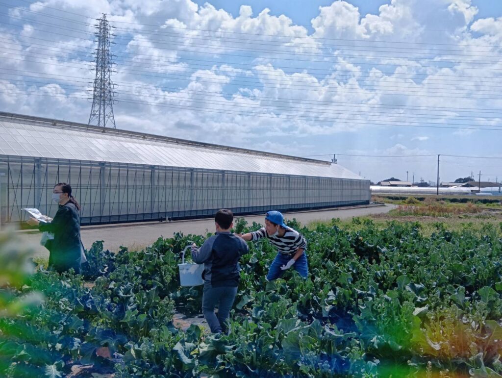 先日、「竹の子クラブいわた 放課後等デイサービス」さんの子どもたちが、野菜の収穫体験に来てくれました。